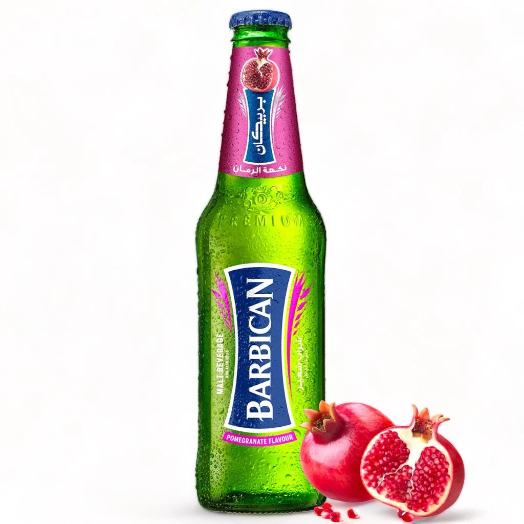 Barbican Pomegranate — 24 × 330 ml Non-alcoholic malt beverage with bright pomegranate flavour and gentle carbonation—best served ice-cold. Includes twenty-four 330 ml glass bottles (7.92 L total), ideal for retail fridges, cafés, and events. Store cool and dry; refrigerate before serving. Ingredients & allergens: see bottle (contains barley malt).